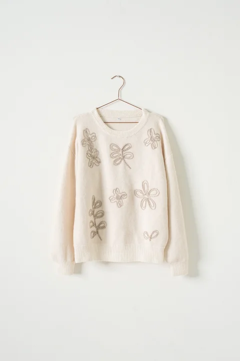 Sweater con detalles bordados brillo.